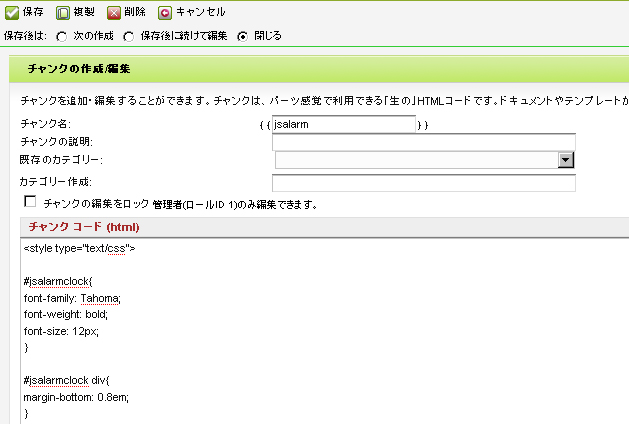 Webページに直に埋め込んでも良いのですが、Modxでは、CSSやJavaScript、htmlなどを「チャンク」とよばれる小さな塊のリソースとして管理できます。